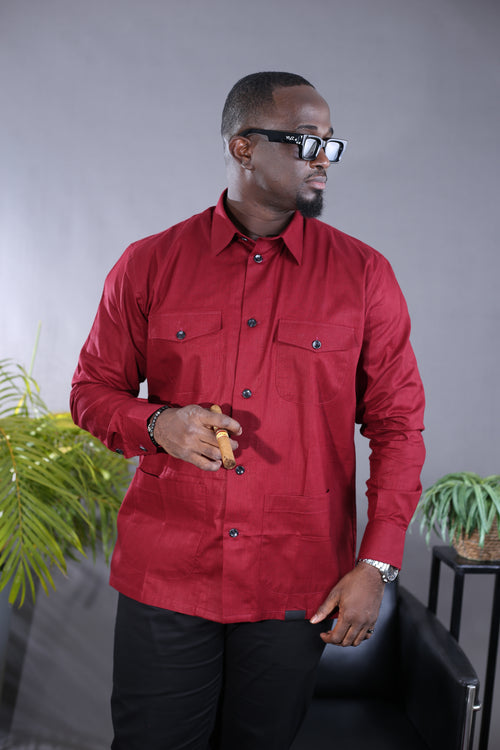 Chemise Cubano Quattro III Lin Rouge Bordeaux Italien