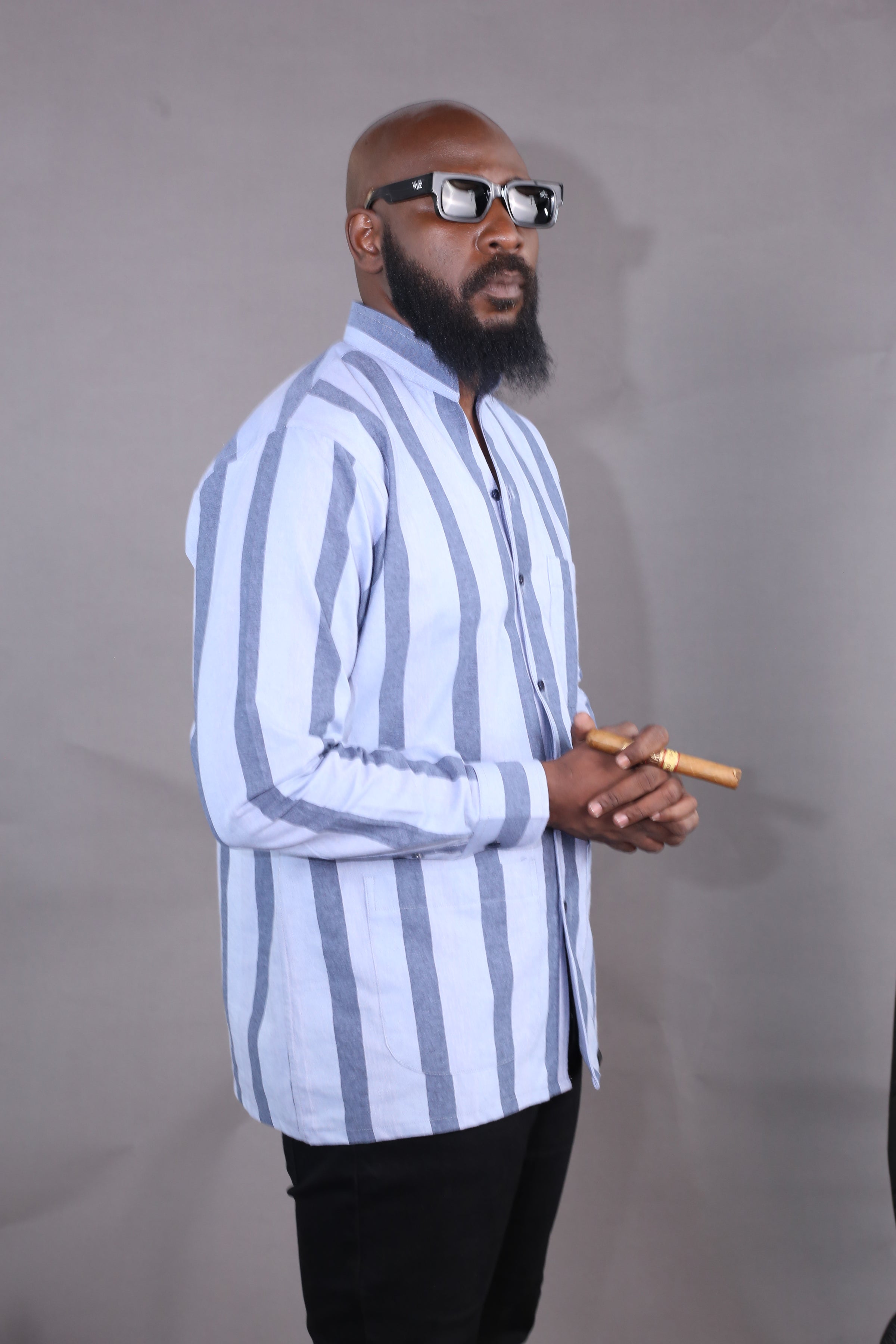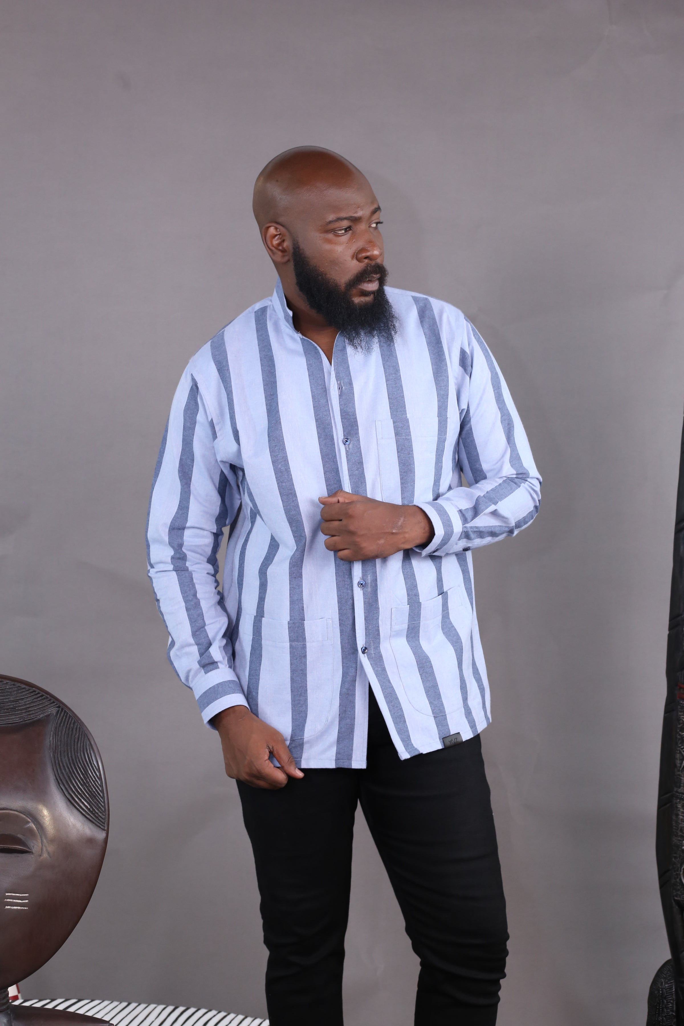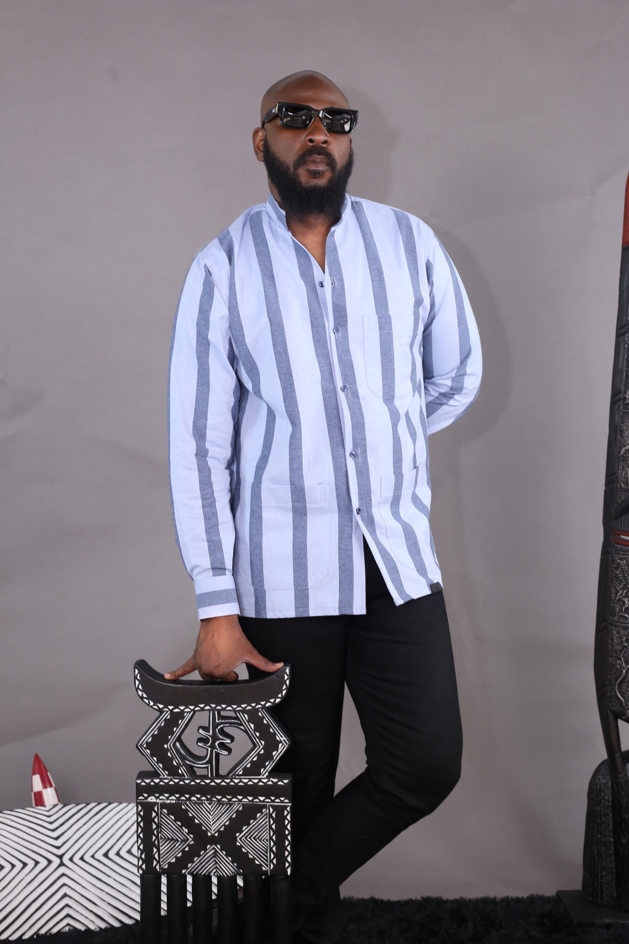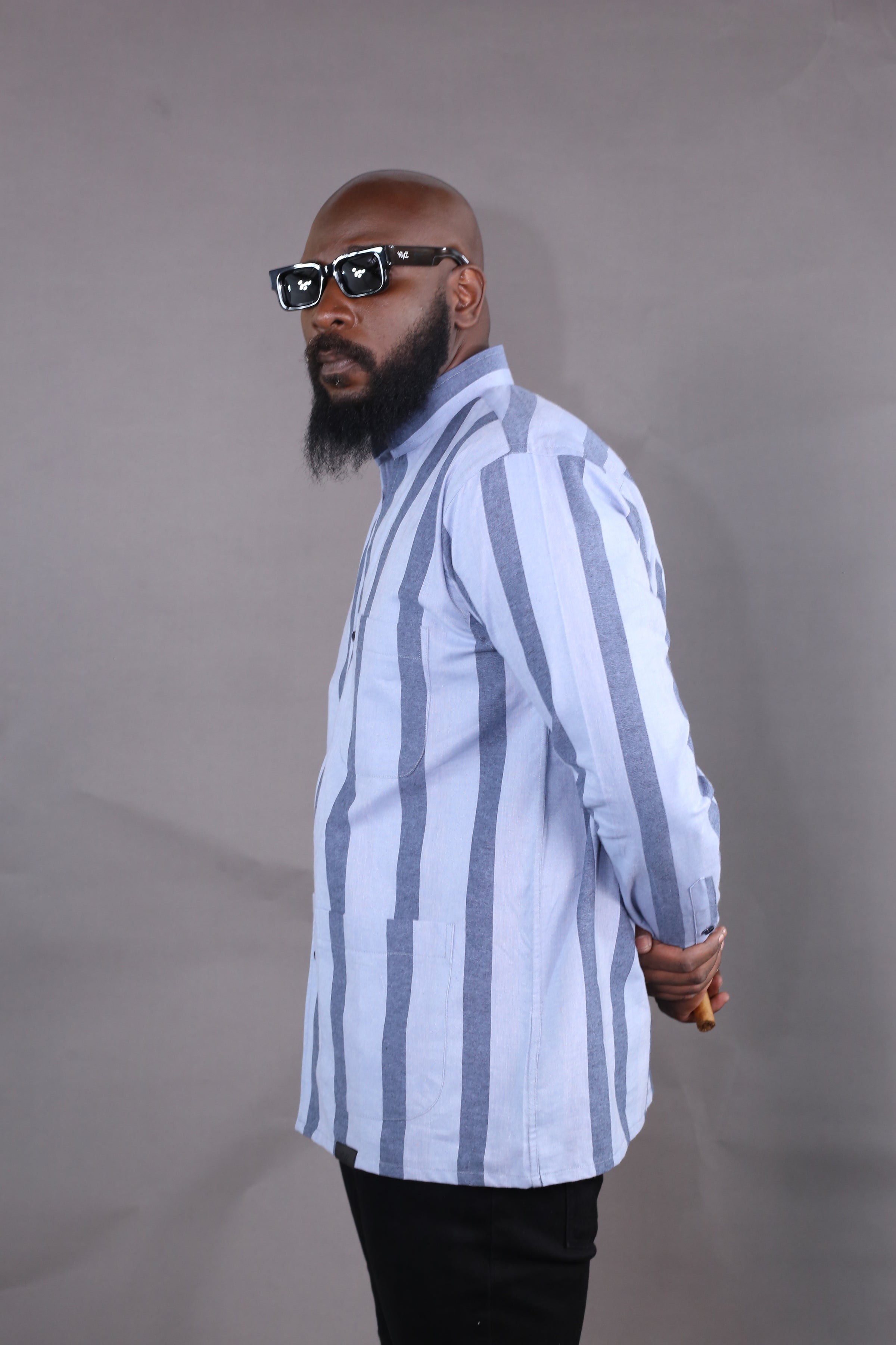 Chemise Kintu II — Bleu Ciel & Rayures Bleu Nuit