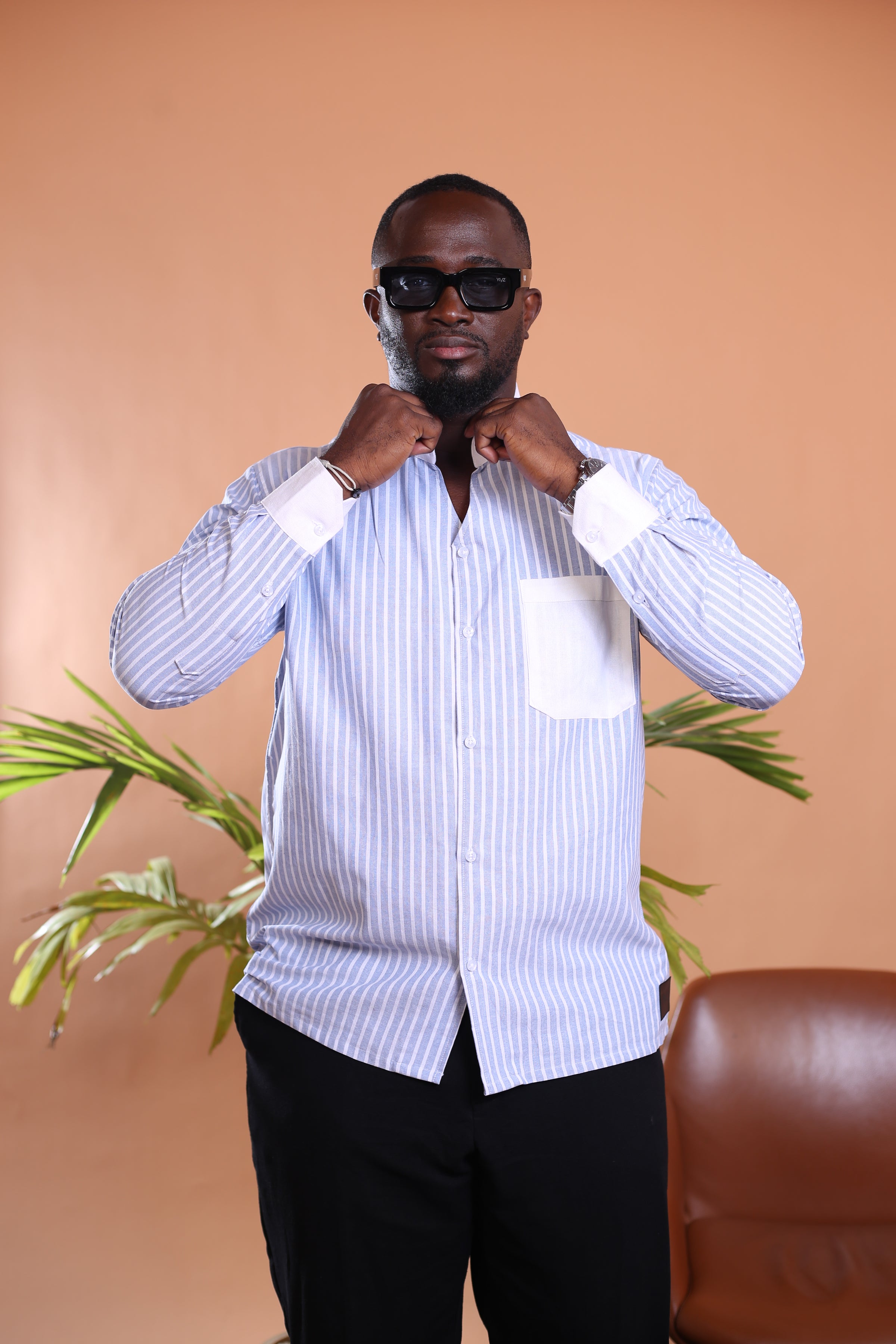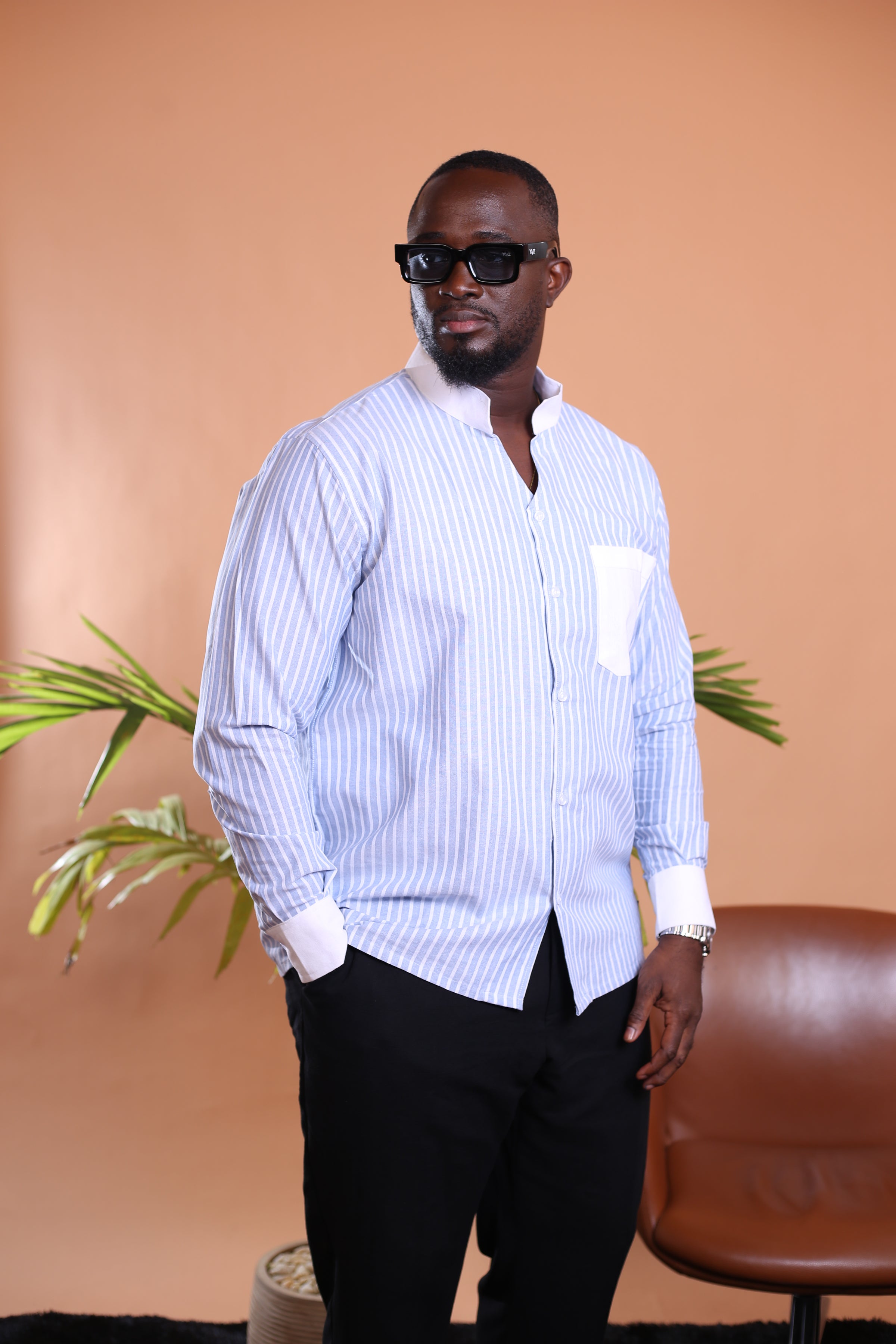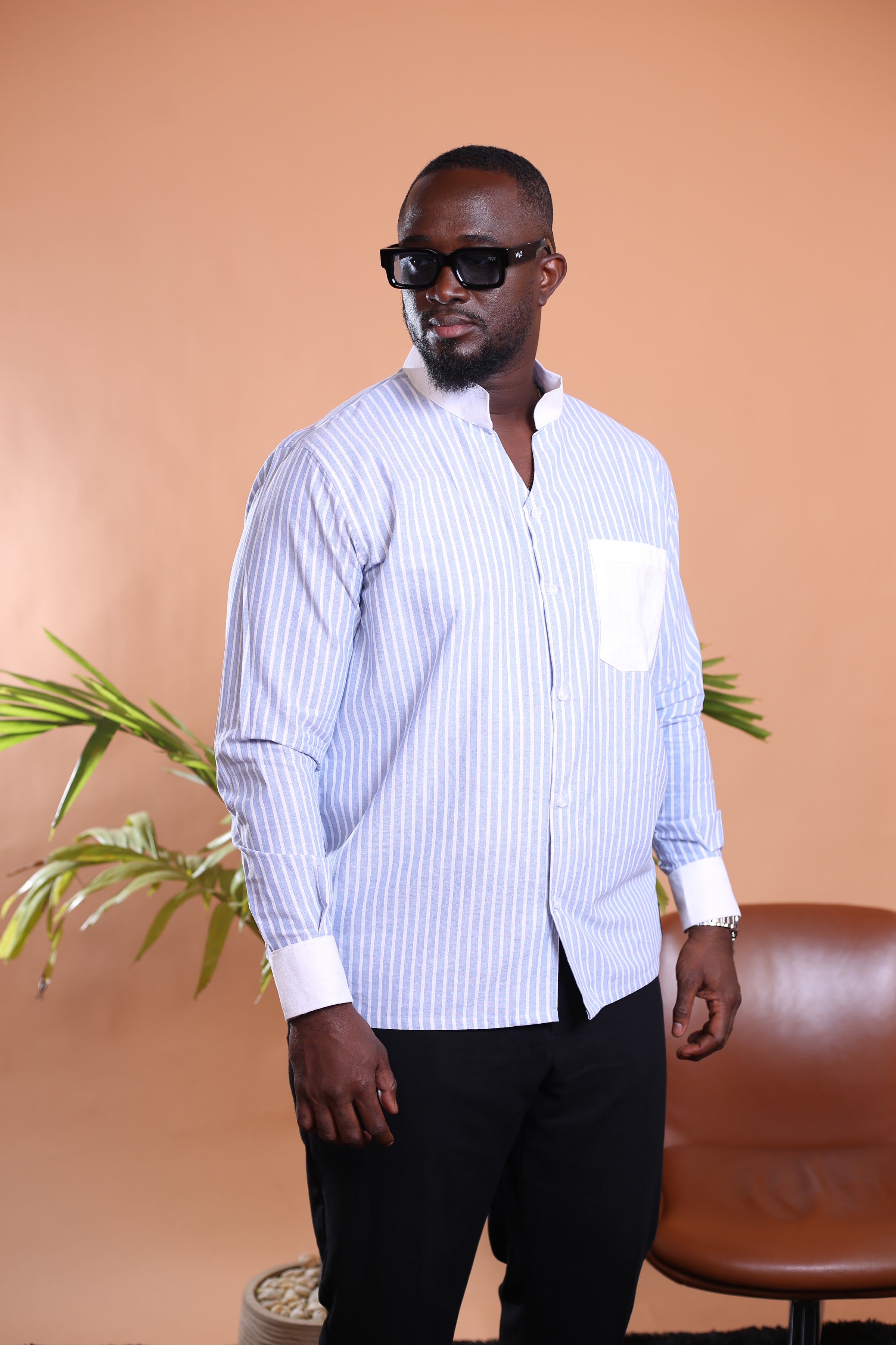 Essentielle et racée, la Chemise Kintu incarne une élégance naturelle, ancrée dans la tradition et résolument contemporaine. Confectionnée en lin léger, elle adopte une coupe droite, un col tulipe structuré, et des manches longues terminées par des poignets boutonnés. Sur la poitrine gauche, une poche plaquée simple vient souligner la fonctionnalité discrète du modèle. Une pièce pensée pour les hommes enracinés, au style sobre mais affirmé.