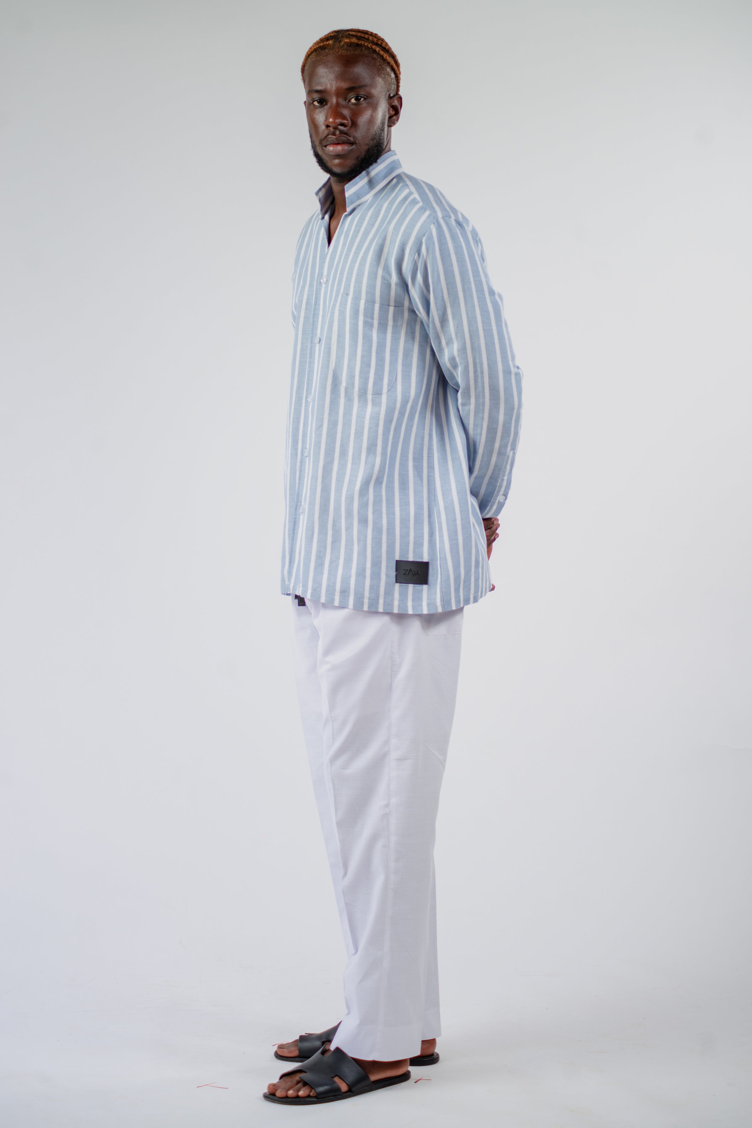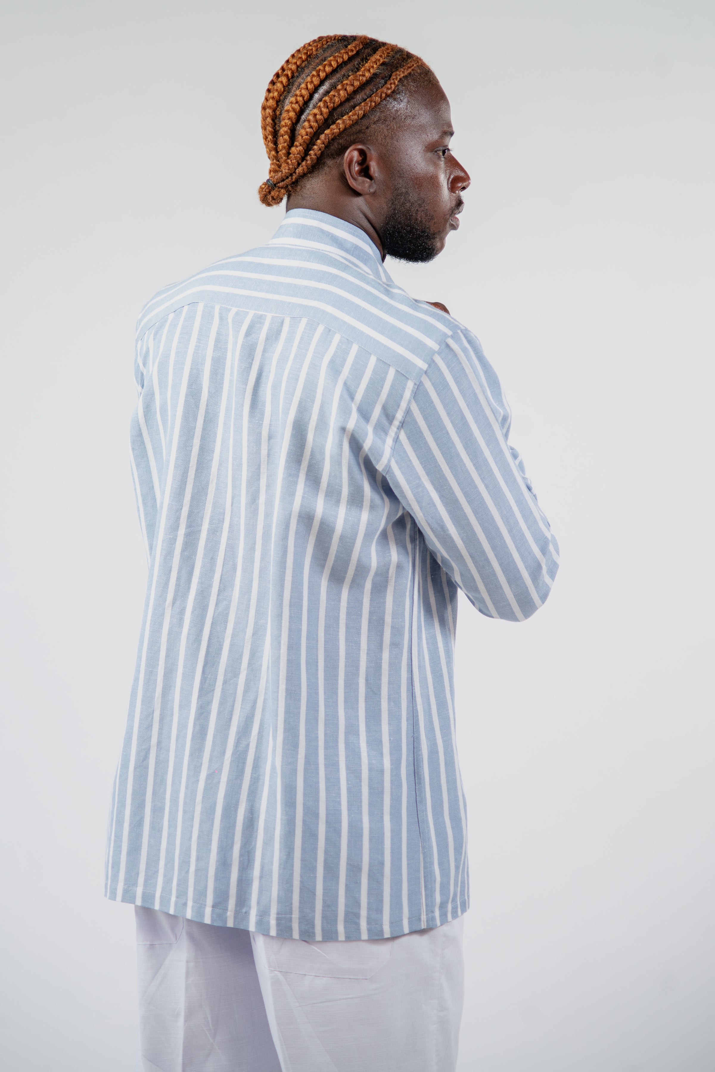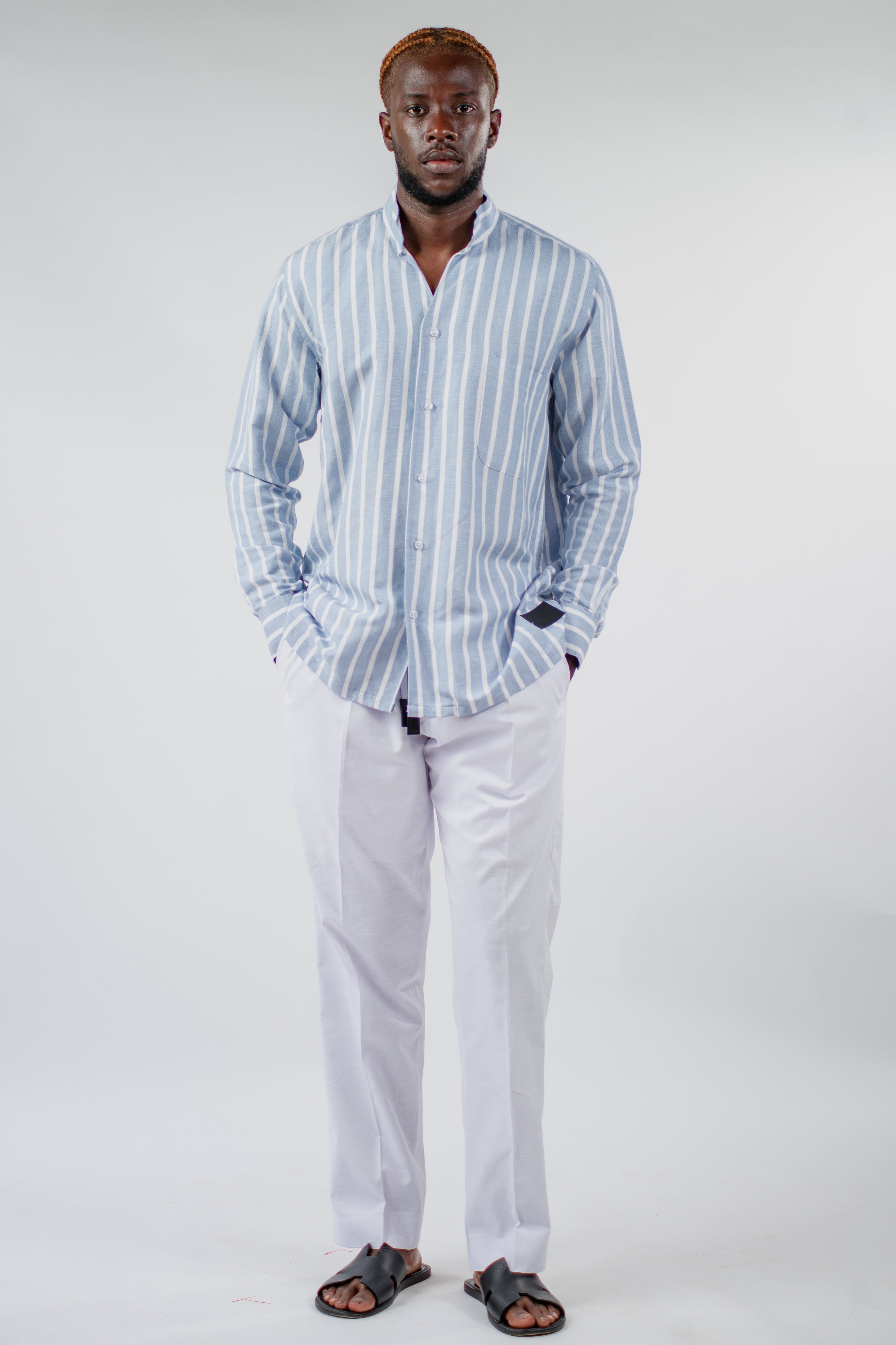 Essentielle et racée, la Chemise Kintu incarne une élégance naturelle, ancrée dans la tradition et résolument contemporaine. Confectionnée en lin léger, elle adopte une coupe droite, un col tulipe structuré, et des manches longues terminées par des poignets boutonnés. Sur la poitrine gauche, une poche plaquée simple vient souligner la fonctionnalité discrète du modèle. Une pièce pensée pour les hommes enracinés, au style sobre mais affirmé.
