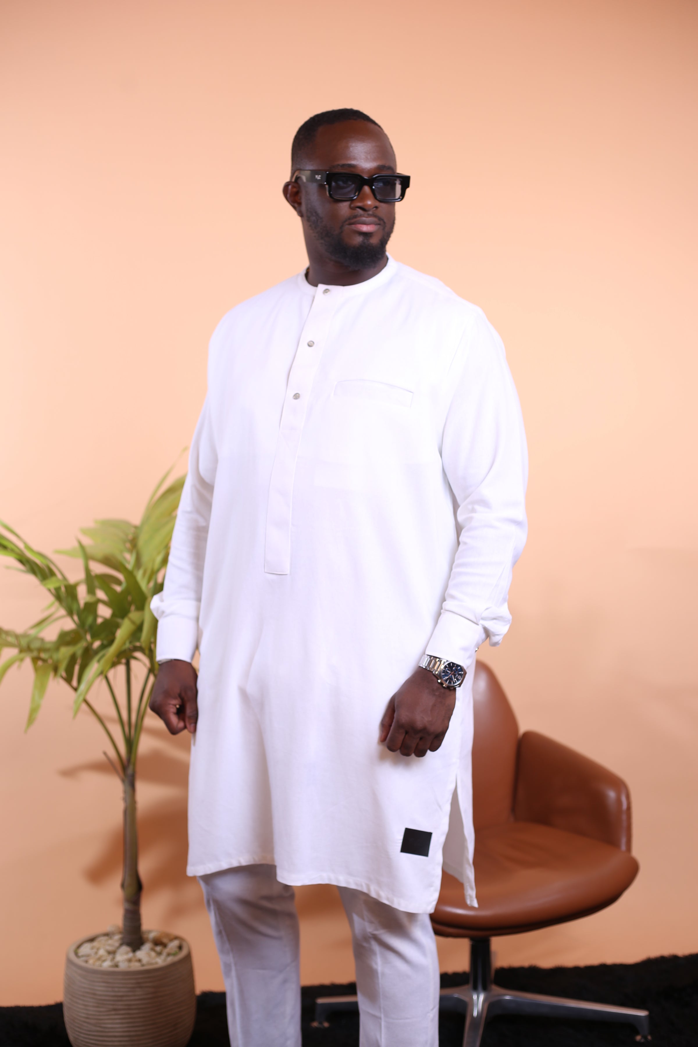 Confectionné en lin de qualité, il allie légèreté, respirabilité et tenue impeccable, idéal pour les climats chauds comme pour les occasions spéciales.