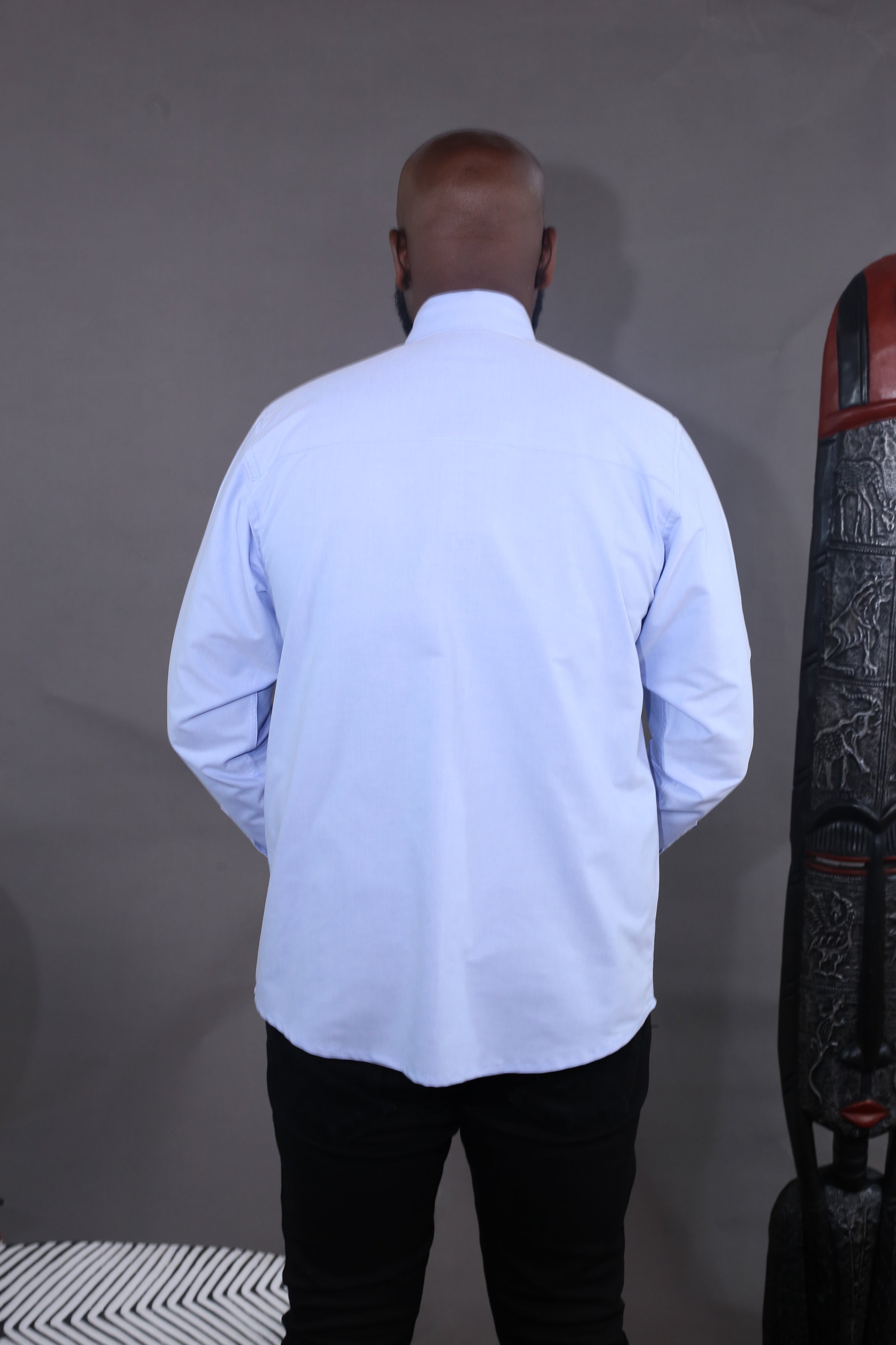 Refinada e distinta. A camisa clássica azul-celeste personifica a essência da alfaiataria masculina intemporal. Confecionada em 100% algodão, apresenta um corte estruturado com gola francesa, carcela oculta para um look impecável e punhos angulares adornados com botões de punho. Uma peça essencial no guarda-roupa, concebida para realçar até as silhuetas mais exigentes.