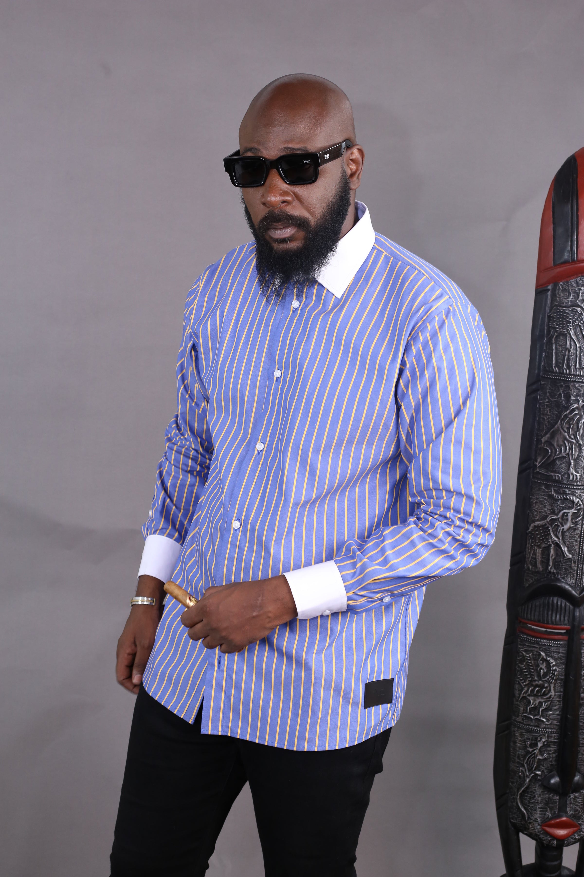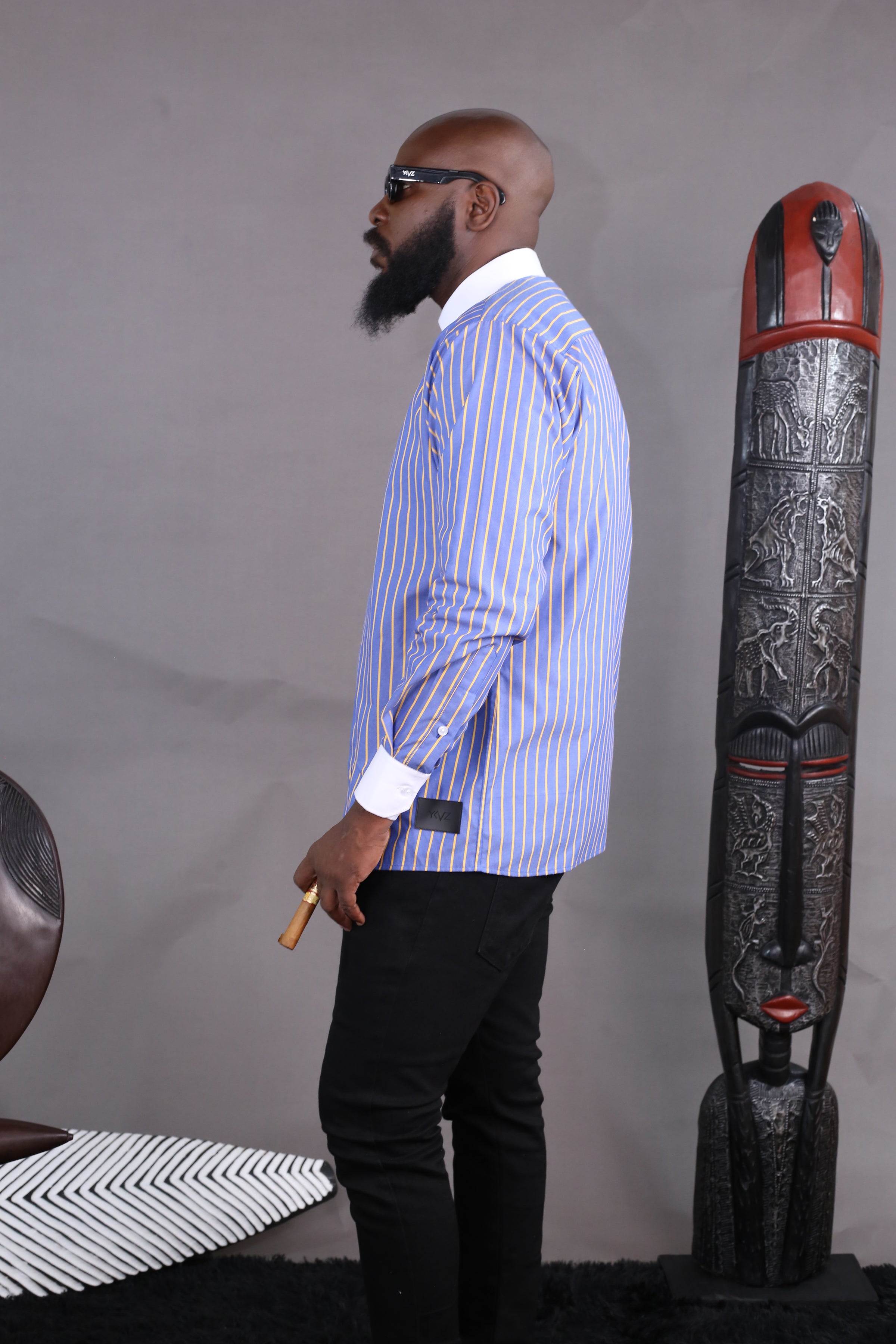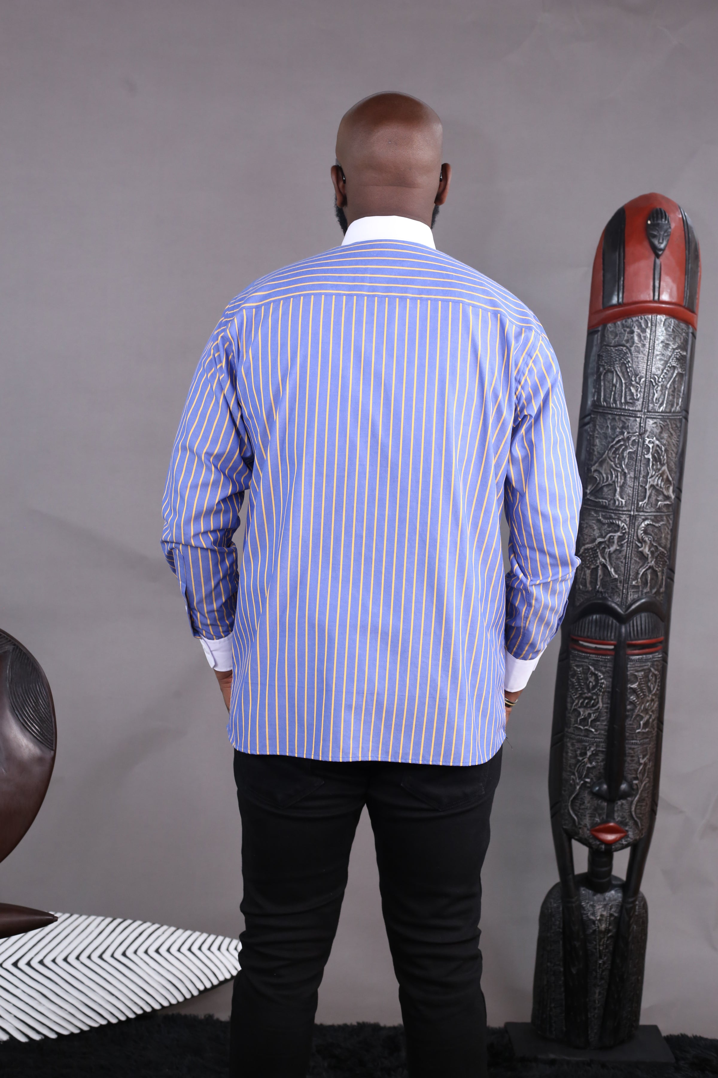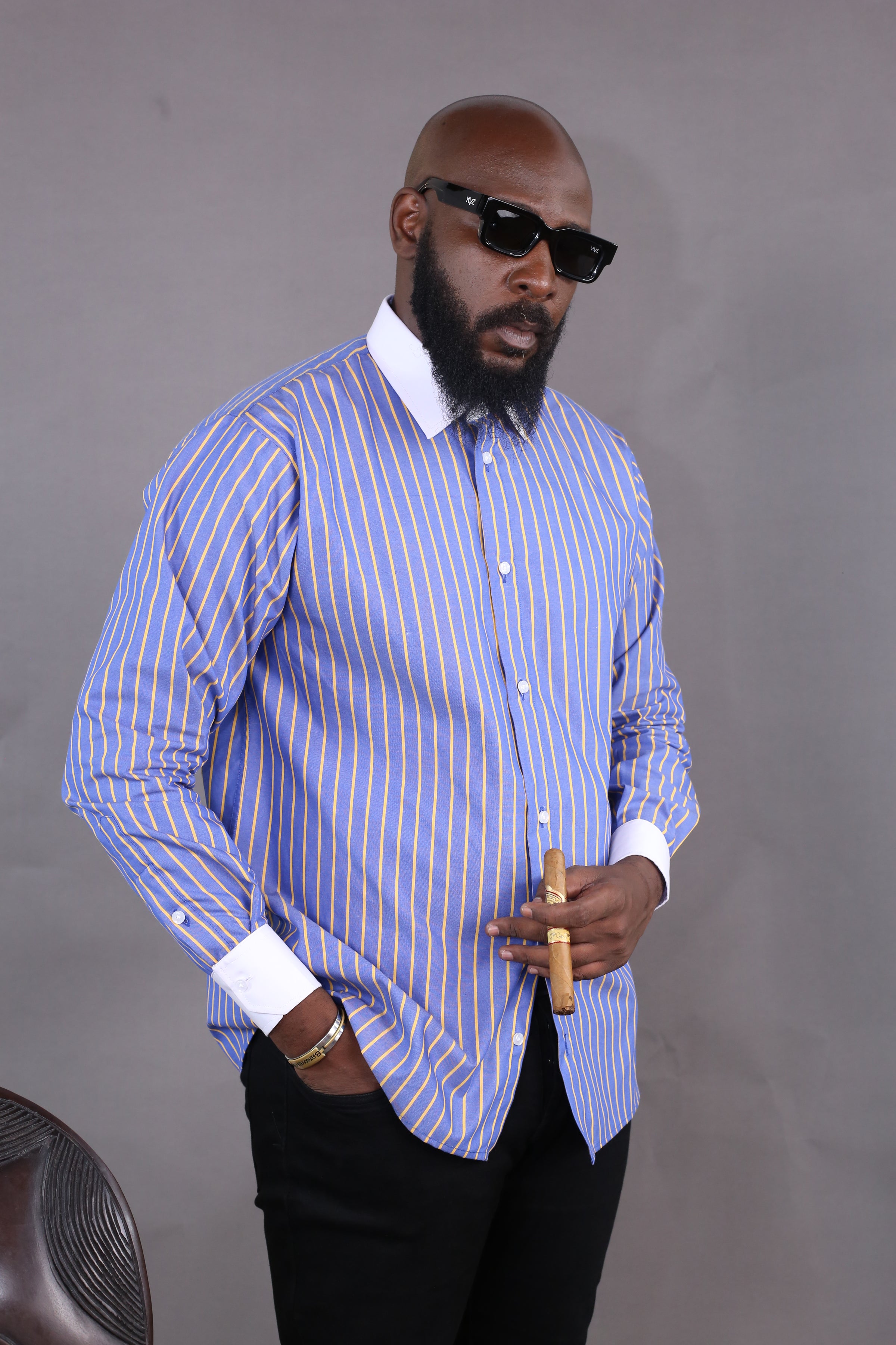 Camisa Wall Street às riscas em azul e amarelo