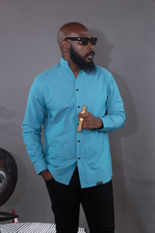 Camisola Kintu II - Linho Azul Celeste e Multicolor
