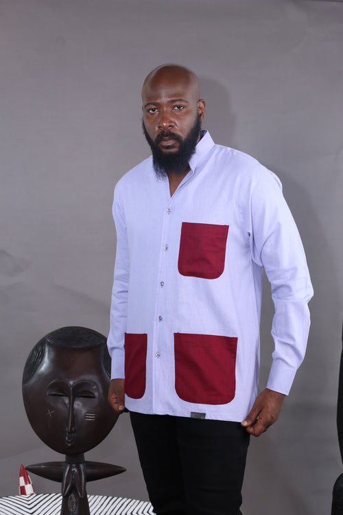 Camisola Kintu II - Linho Azul Celeste e Bordô