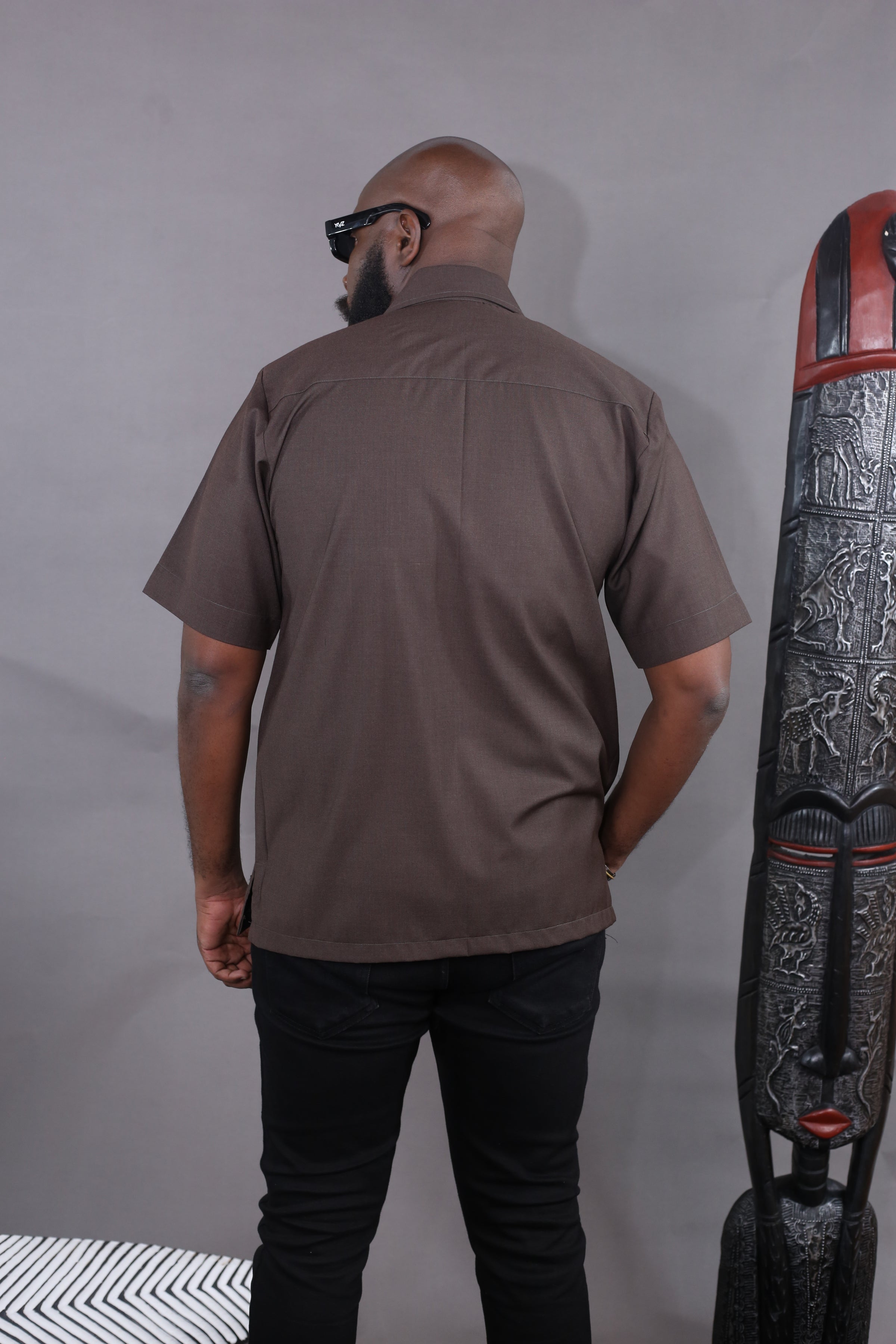 Dotée de manches courtes et d’un col français structuré, elle se distingue par sa fermeture éclair frontale, alternative contemporaine aux boutons traditionnels.
